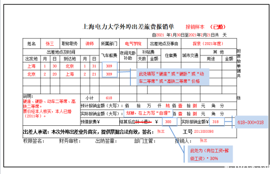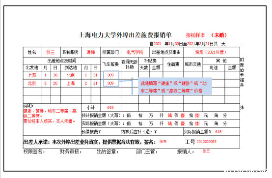 2、外埠出差旅费报销单填写样张: